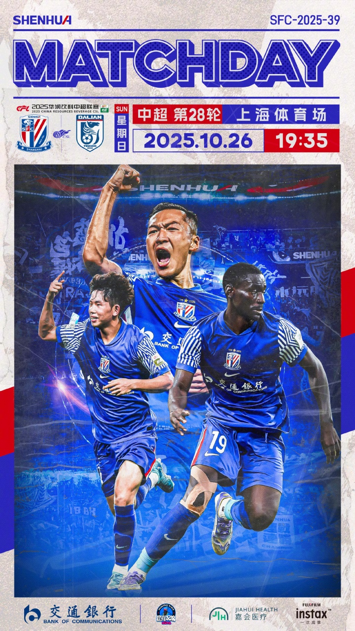 10月26日讯 北京时分19点35分,中超第28轮,上海申花主场迎战大连英博,赛前两边公布首发。高天意、李可、阿苏埃先发,刘祝润、朱鹏宇出战,申花主力中卫蒋圣龙因四黄停赛。