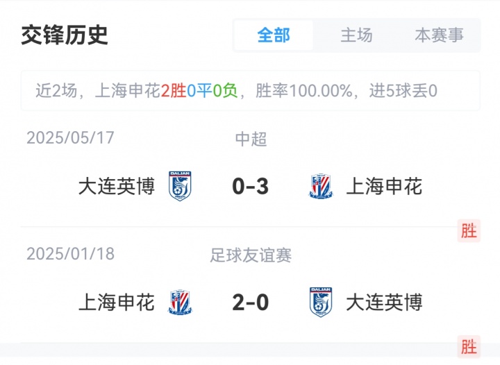 上海申花17胜6平4负积57分,排行中超第3;大连英博9胜7平11负积34分,排行中超第10。