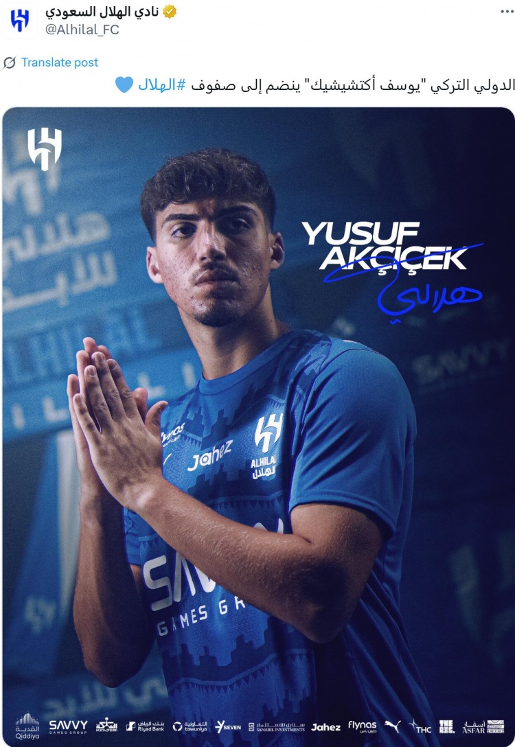 9月2日讯 字据利雅得眉月官推发布的音书,该俱乐部从费内巴切队签下土耳自后卫阿克塔什奇克,转会费为2200万欧元。