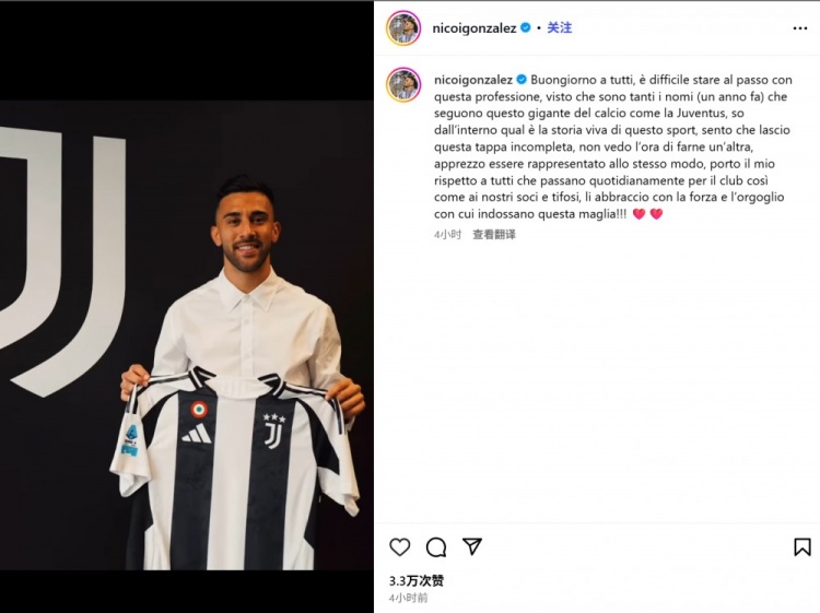 冈萨雷斯社媒告别尤文:足球真的顷刻万变,自愿这段旅程不够圆满