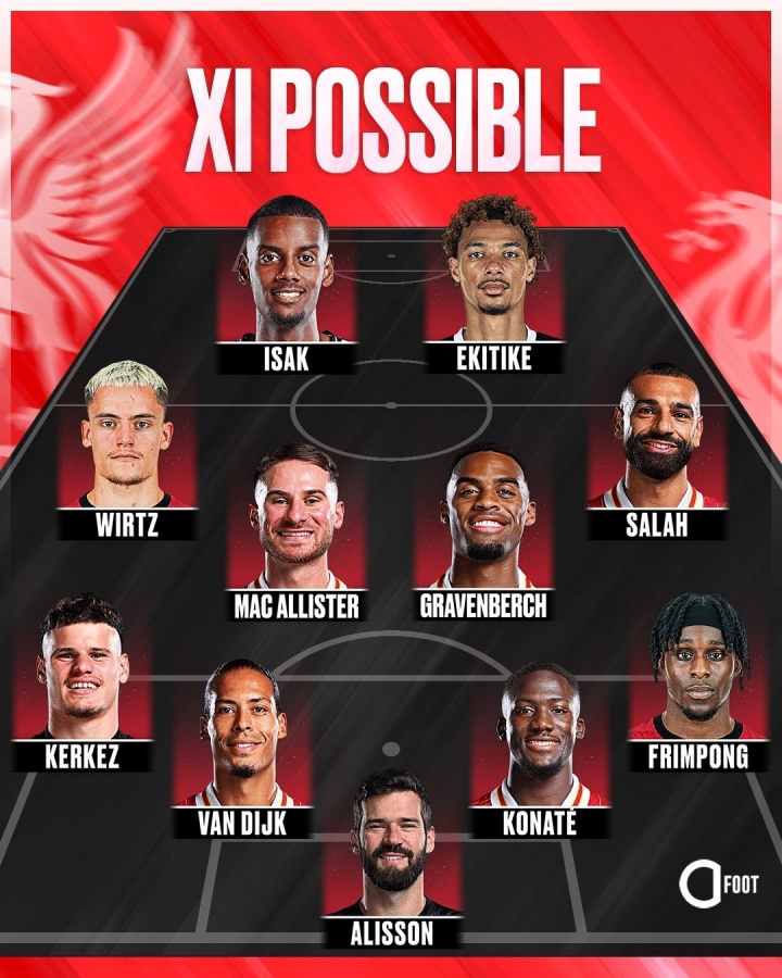 恐怖!外媒揣摸利物浦首发:伊萨克+埃基蒂克 维尔茨、萨拉赫在列