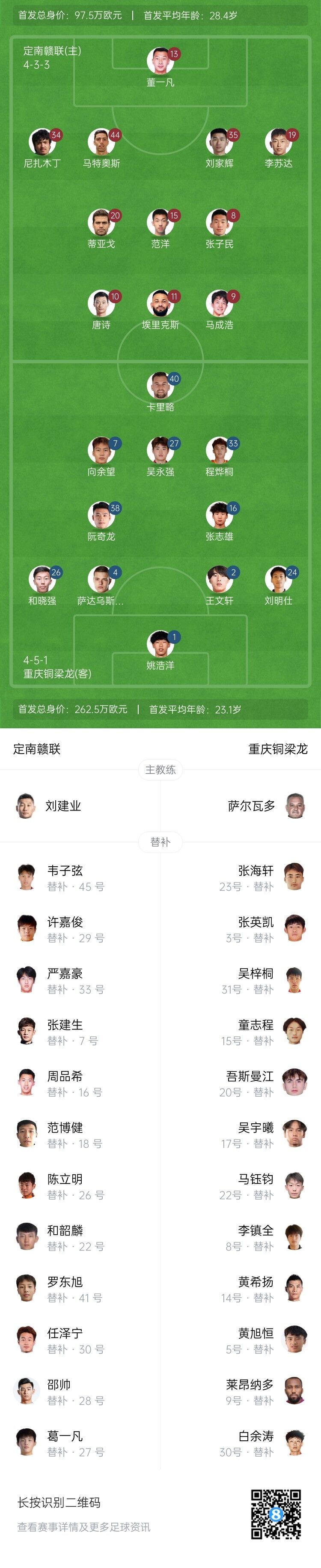 伤停补时2分钟。上半场比赛放弃,定南赣联3-0重庆铜梁龙。