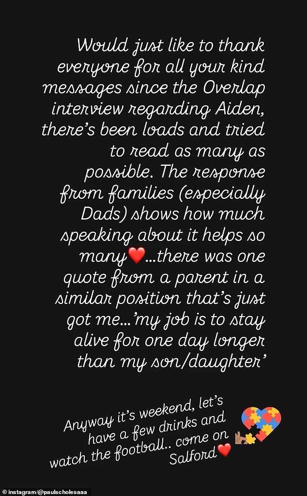 50岁的斯科尔斯发ins,抒发了他对有近似阅历的父母的恢复让他深受感动。