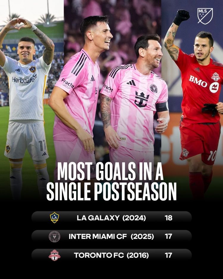 据好意思职联官方统计,迈阿密海外本赛季好意思职联5场季后赛打进17球,好意思职联历史单届季后赛进球比肩第二多,差1球追平洛杉矶星河保执的记录。