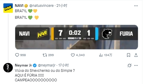 落败的NAVI再次在社媒以玩笑的神色复兴说念:“诞妄太多,以致连内马尔齐朝咱们开火了...”