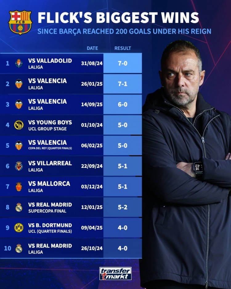 弗里克抓教巴萨最大得手:7-0巴拉多利德居首,5-2、4-0皇马在列