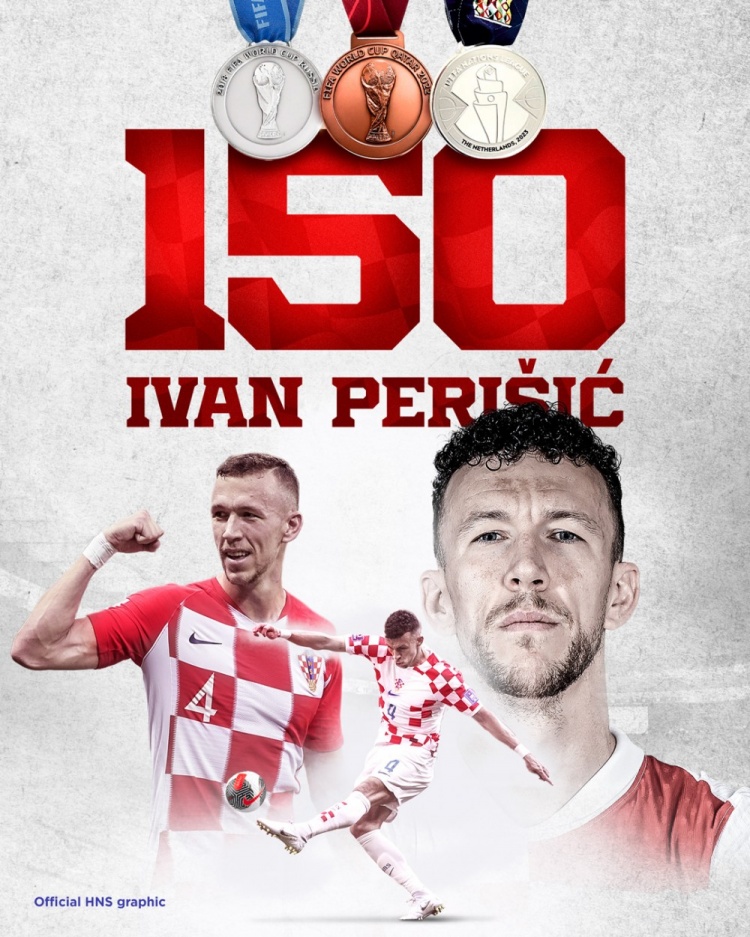 此役是佩里西奇为克罗地亚出战的第150场比赛,克罗地亚队官方社媒晒出海报,对他暗示祝福。
