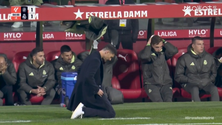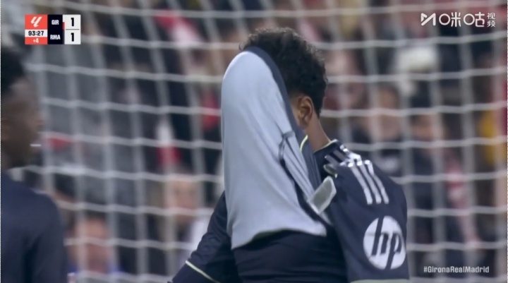 错失绝杀后,罗德里戈用球衣蒙住了头,场边的阿隆索跪地俯首。随后赫罗纳门球开出,主裁吹响了终场哨。