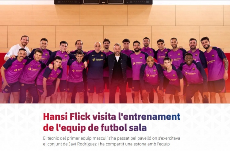 巴萨官方:弗里克今天去看了巴萨室内足球队的查验,并与球队合影