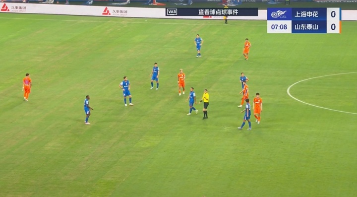 比赛第6分钟,泰山球员投诉马纳法留心时手球,VAR查验后证据莫得犯规,裁判表露比赛不绝。