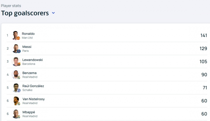 下一诡计劳尔!姆巴佩欧冠已打进60球,位列欧冠历史弓手榜第6