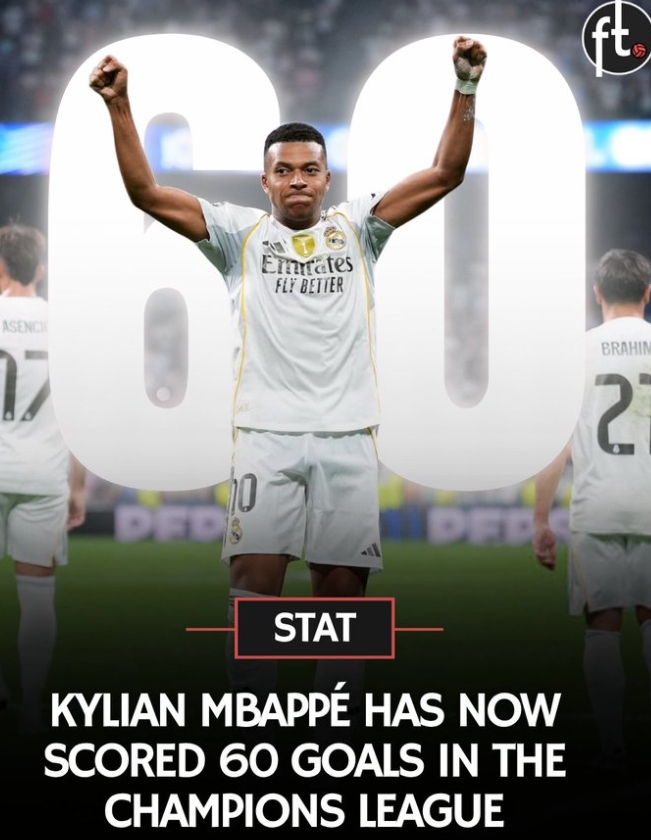 10月01日讯 皇马5-0大捷凯拉特,姆巴佩献技帽子戏法。至此,26岁的姆巴佩在欧冠也曾打进60球,位列欧冠历史弓手榜第6位。