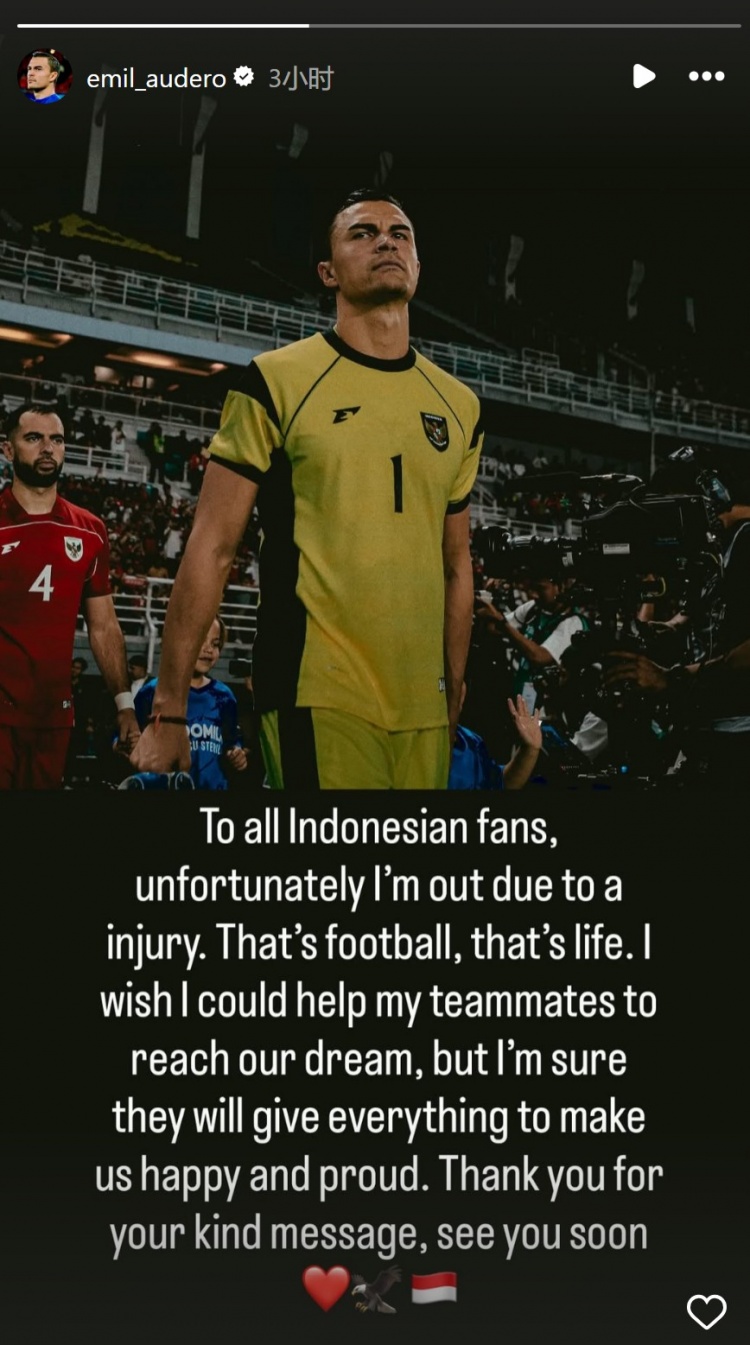 印尼门将奥代罗社媒:我因伤退出本期国度队,感谢人人的祈福信息