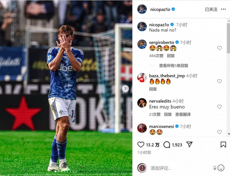 此役尼科-帕斯传射立功,匡助科莫取胜,赛后他在唐突媒体上晒出记号性庆祝手脚,配文:“还不赖吧?”