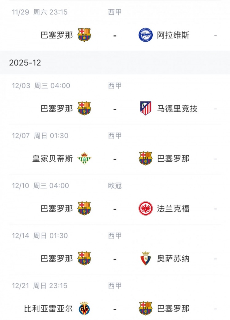 4周6战!世体:巴萨年底迎来笨重赛程,联赛将战马竞贝蒂斯黄潜