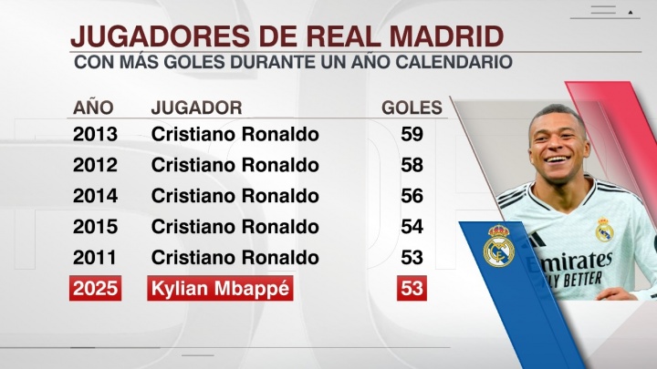 追逐偶像!皇马球员单年俱乐部进球:C罗刷屏!姆巴佩53球还有5场