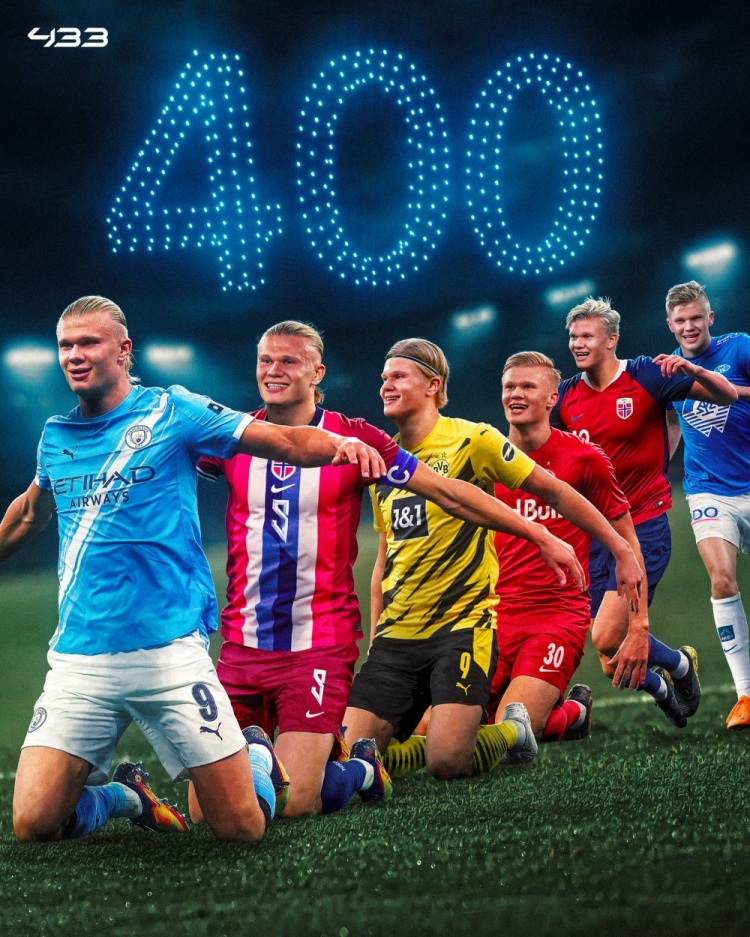 打破400球!哈兰德职业活命于今已参与401球,在曼城144球23助