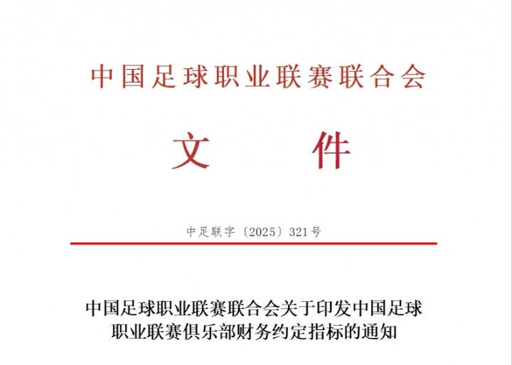 【关联】中足联官方:中超俱乐部单个财年总开销不得超税前6亿,中甲2亿