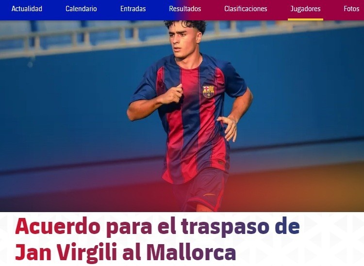 8月30日讯 本周巴萨官方宣布边锋小将扬-维尔祥瑞转会加盟马洛卡,而扬-维尔祥瑞随后发晓示别巴萨。