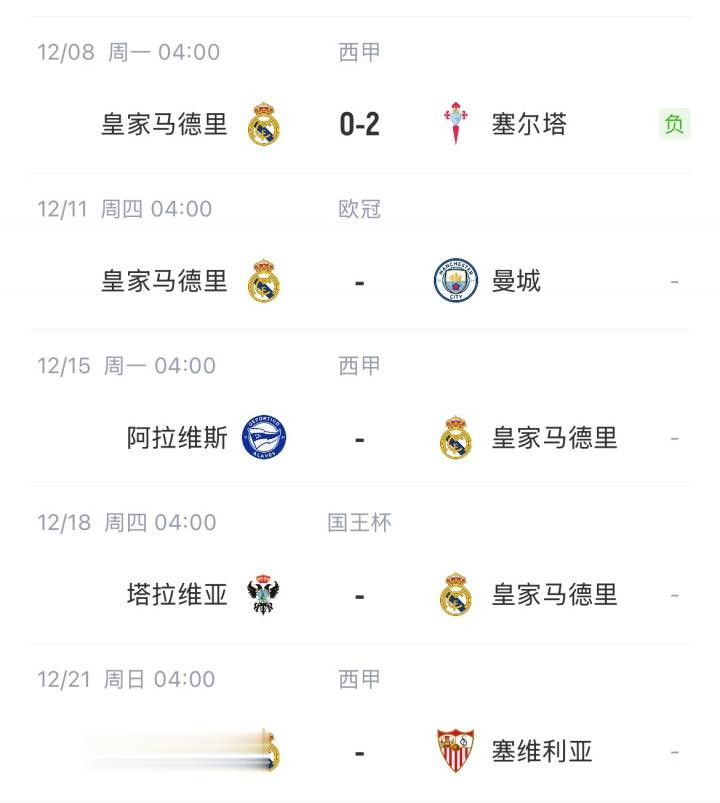 皇马将来赛程↓