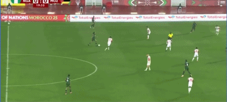 第20分钟,阿科-亚当斯横传中路,着力于意甲亚特兰大队的卢克曼推射破门,匡助尼日利亚1-0跳跃。