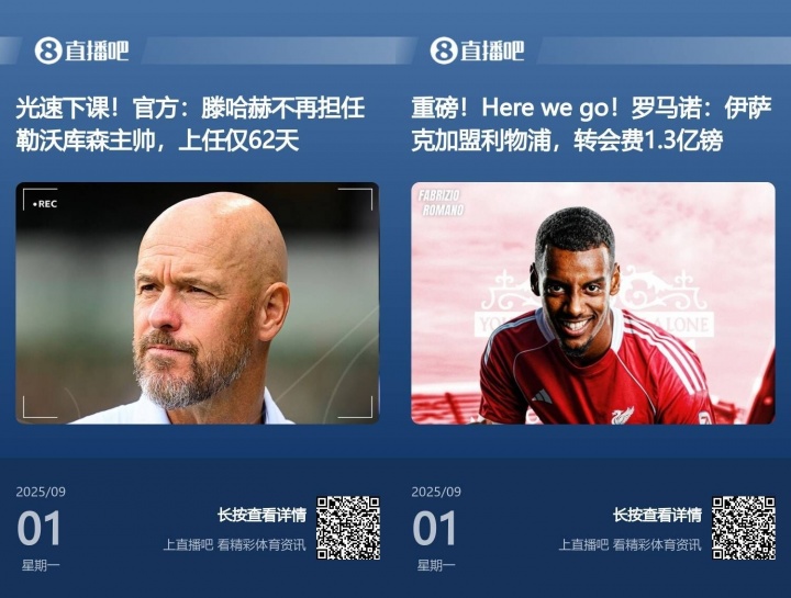 09月02日讯 新赛季夏窗照旧结束,伊萨克在抑遏日成为标王,同期也成为了转会窗的第一流量王。相关词他却不是头条新闻。昨日,勒沃库森主帅滕哈赫的光速下课,成为了头条。