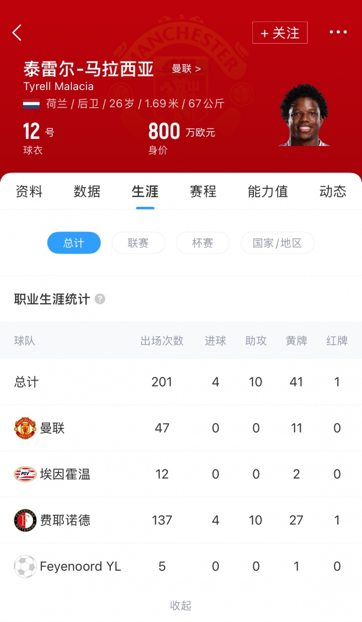 马拉西亚2022年加盟曼联,现在遵循曼联3年共出场47次,0球0助拿到11张黄牌。