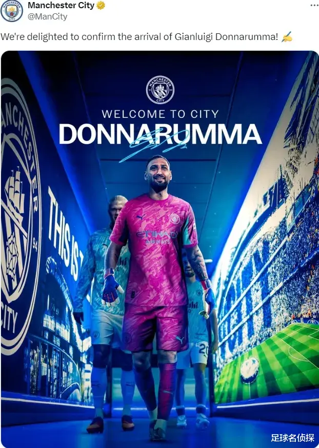 官方:曼城文牍从巴黎签下了唐纳鲁马,这名门将签下了一份5+1合同。