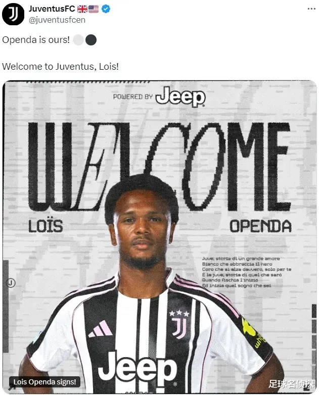 官方:尤文文牍从莱比锡红牛签下了25岁的奥蓬达。
