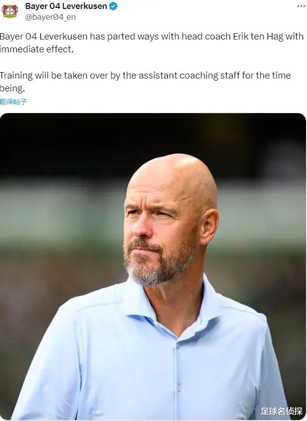 滕哈格只是携带勒沃库森干涉了2场德甲比赛便遭到了受命。