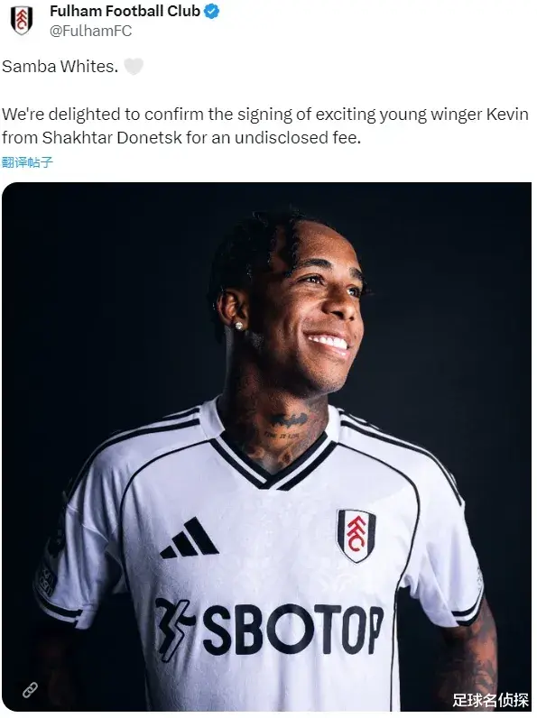 官方:富勒姆文牍从顿涅茨克矿工签下了凯文,这名22岁的边锋签下了一份2030年到期的合同,附带延迟一年条件。