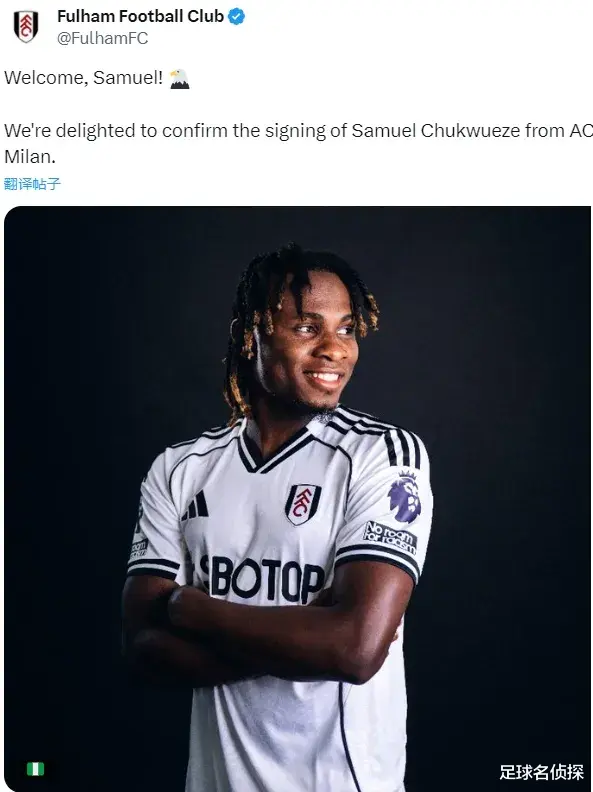 官方:富勒姆文牍从米兰租赁签下了楚克乌泽。