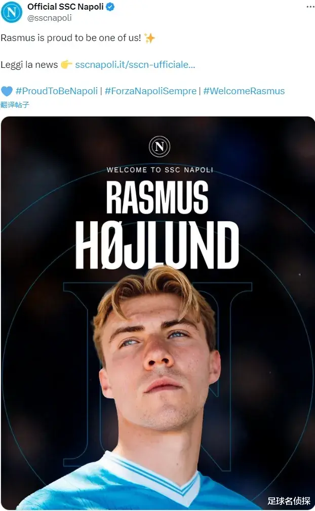 官方:那不勒闲雅书从曼联签下了霍伊伦德。