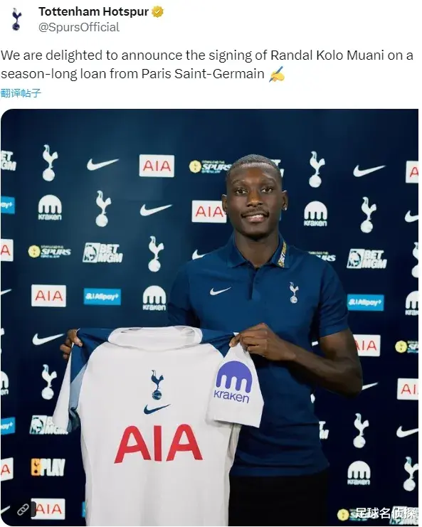 官方:热刺文牍从巴黎租赁签下了穆阿尼。