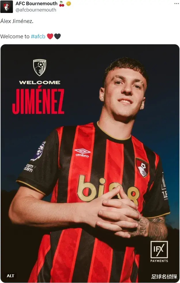 官方:伯恩茅闲雅书从米兰签下了阿莱克斯-希门尼斯。