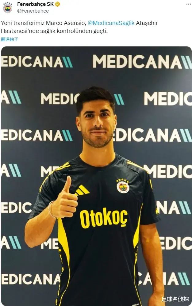 官方:费内巴切文牍从巴黎签下了阿森西奥,两边签下了一份3+1合同。