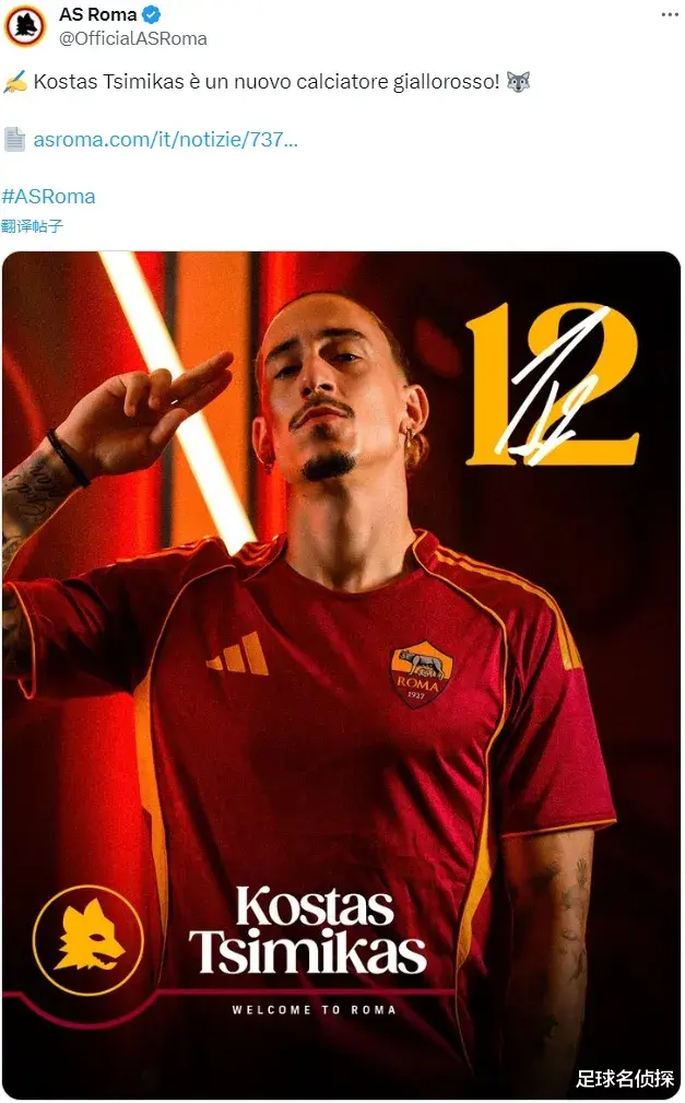 官方:罗马文牍从利物浦租赁皆米卡斯一个赛季。